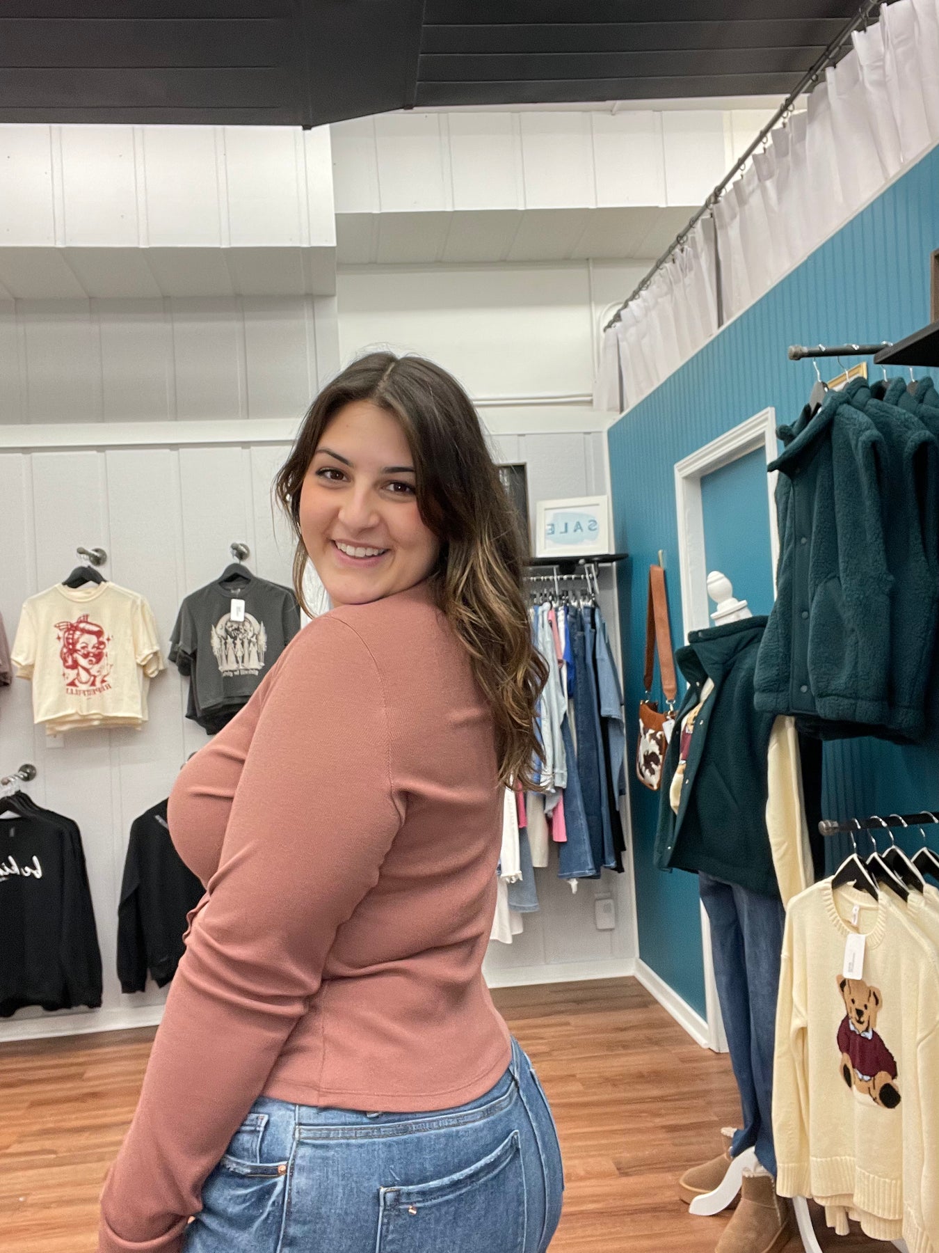 Step out in daring style with this ribbed long sleeve top, featuring bold floral details on the buttons. Its textured fit highlights your shape while the unexpected floral accents add a fierce, feminine edge to your look. Perfect for making a confident statement wherever you go.
