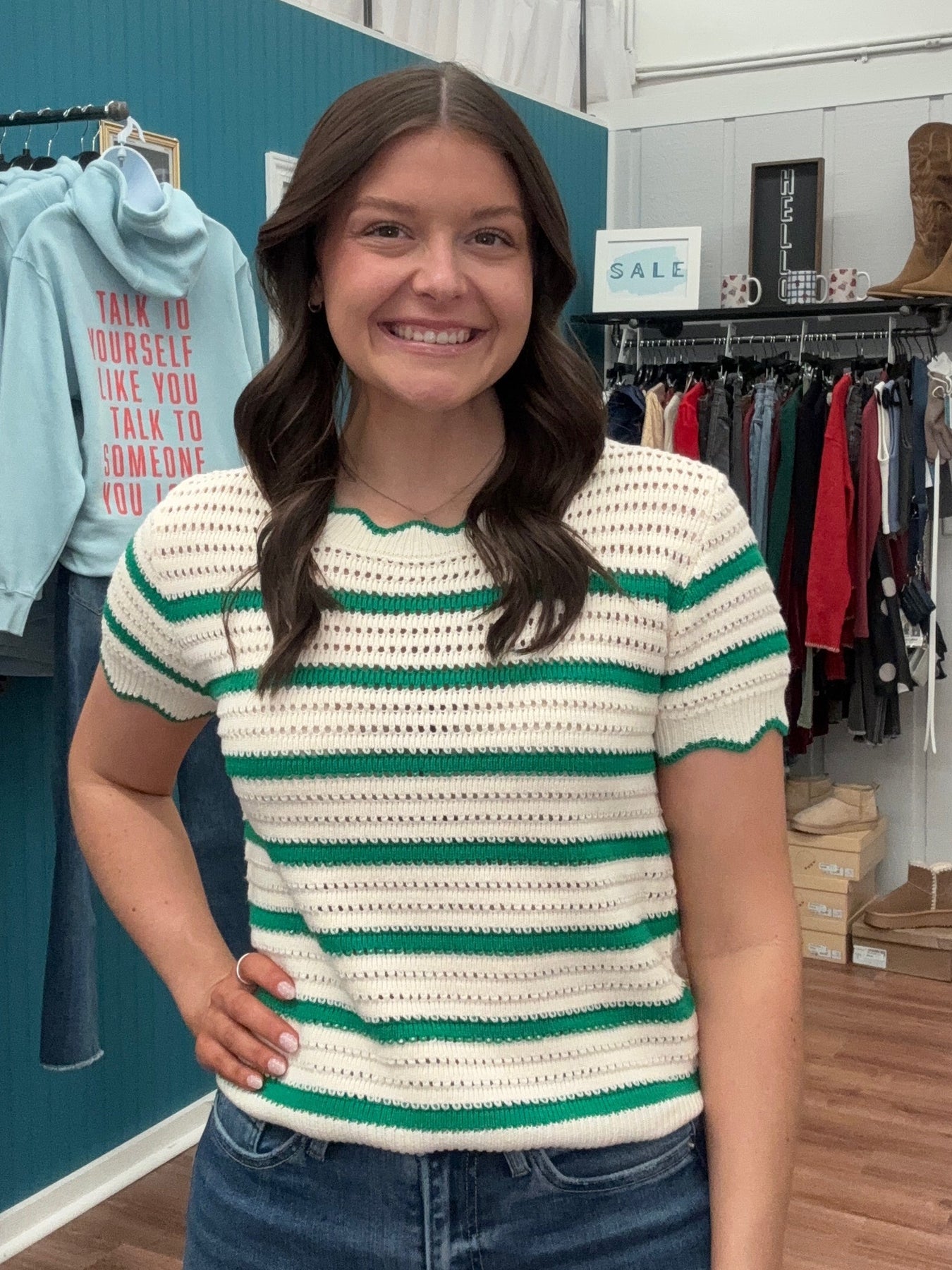 Elevate your casual wardrobe with this short sleeve striped sweater, featuring distinctive edge detailing that adds modern sophistication. The classic stripe pattern offers versatile styling options, while the thoughtfully designed edges create visual interest and dimension. Perfect for layering or wearing solo, this piece transitions seamlessly from season to season. Crafted for comfort and style, it's an essential addition to any closet.
