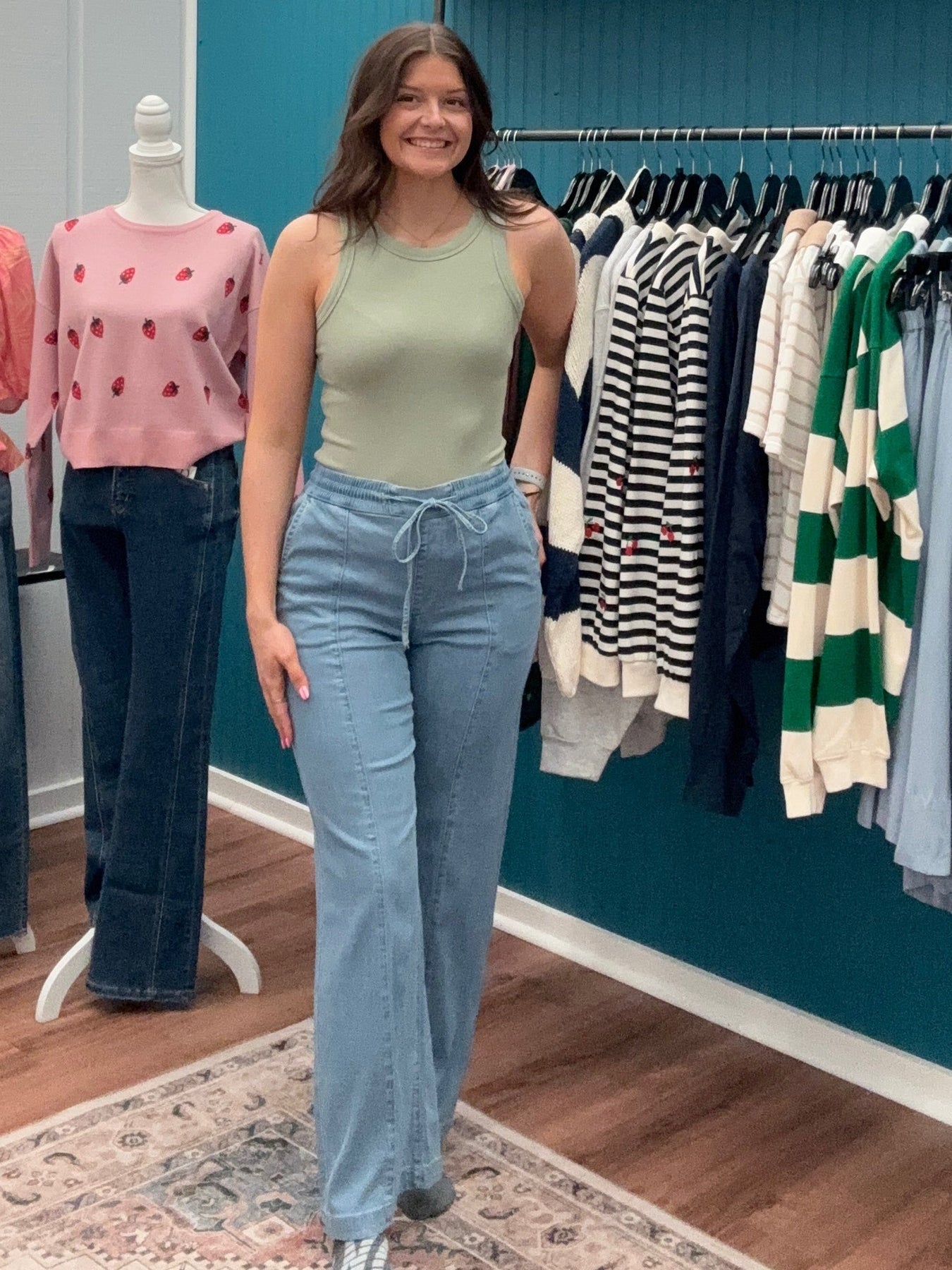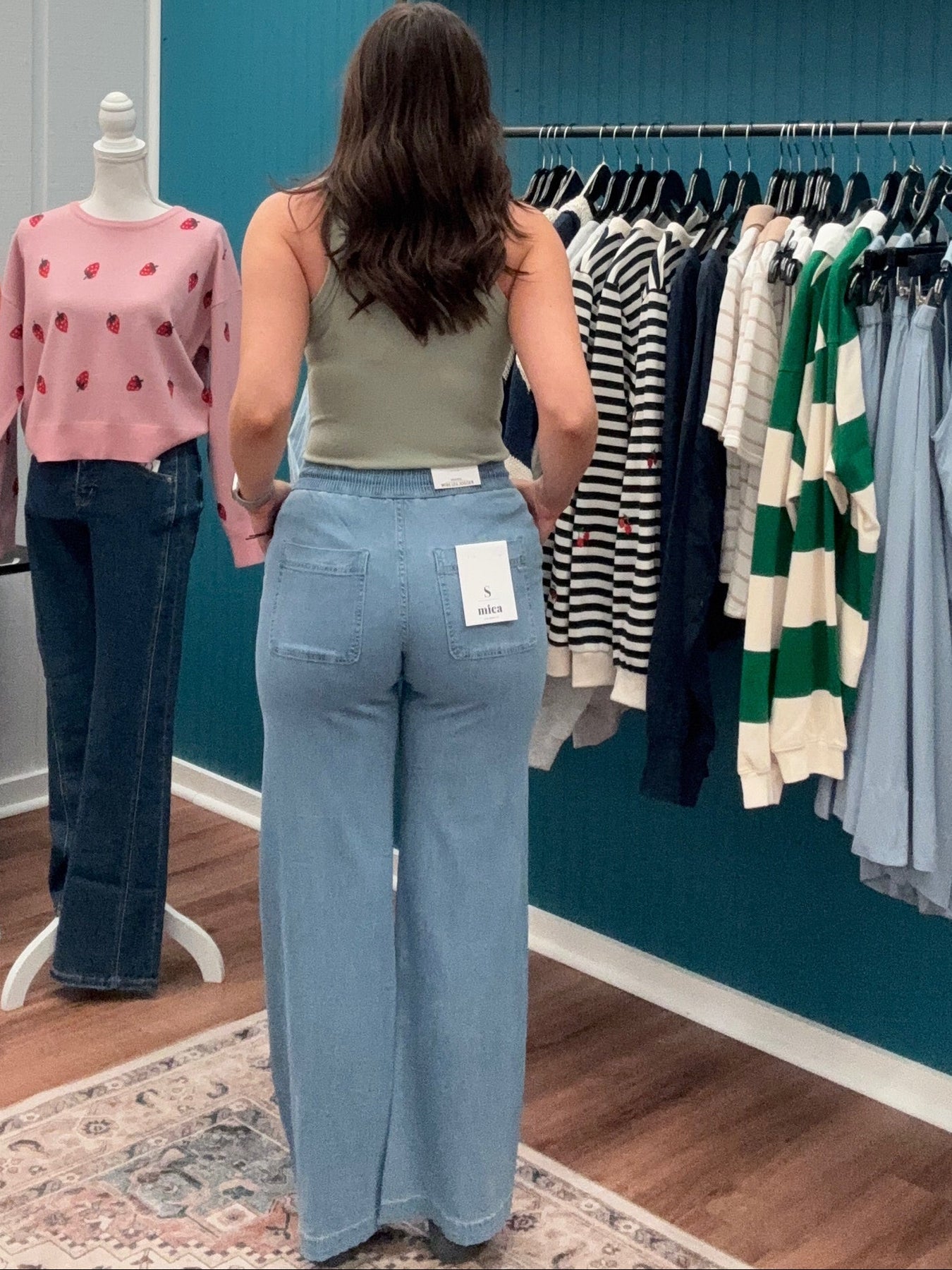 The Durham High Rise Wide Leg Denim Jogger combines tailored sophistication with everyday comfort. Crafted from premium denim, the high-rise cut elongates the silhouette while the wide leg silhouette offers a relaxed, contemporary fit. The structured waistband ensures a secure hold throughout the day, making these joggers equally suited for casual outings or elevated weekend wear. Versatile enough to pair with sneakers or heels, they're an essential addition to any modern wardrobe.