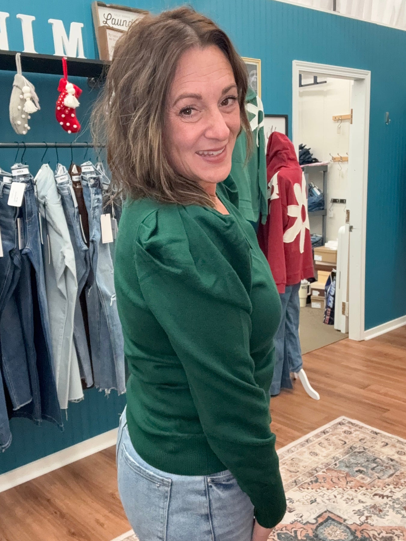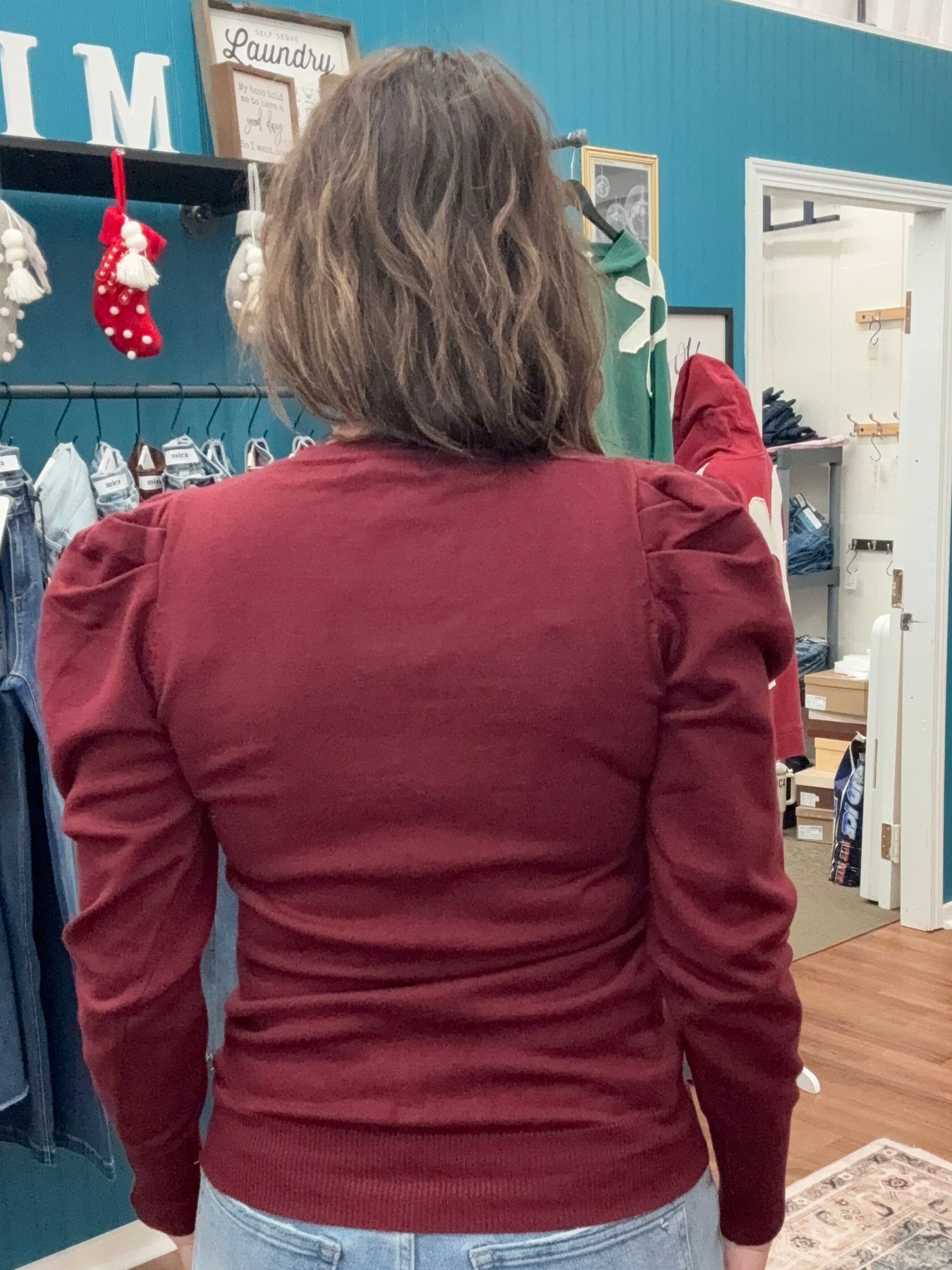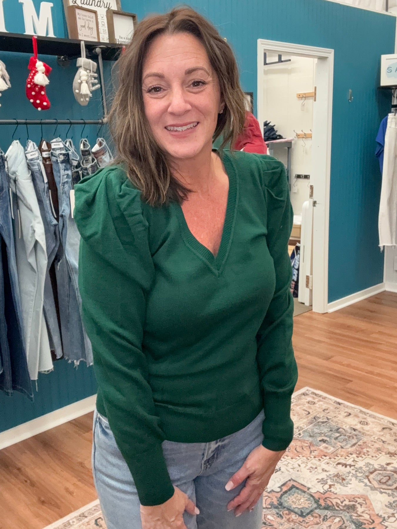 Elevate your layering game with this sophisticated V-neck puff sleeve sweater. The voluminous long sleeves add contemporary flair while the classic V-neckline creates a flattering silhouette. Crafted for versatility, this piece transitions seamlessly from casual weekends to polished office settings. The structured puff detailing at the shoulders provides visual interest without compromising comfort. Perfect for layering over basics or wearing solo, this sweater delivers both style and substance for the discerning wardrobe.