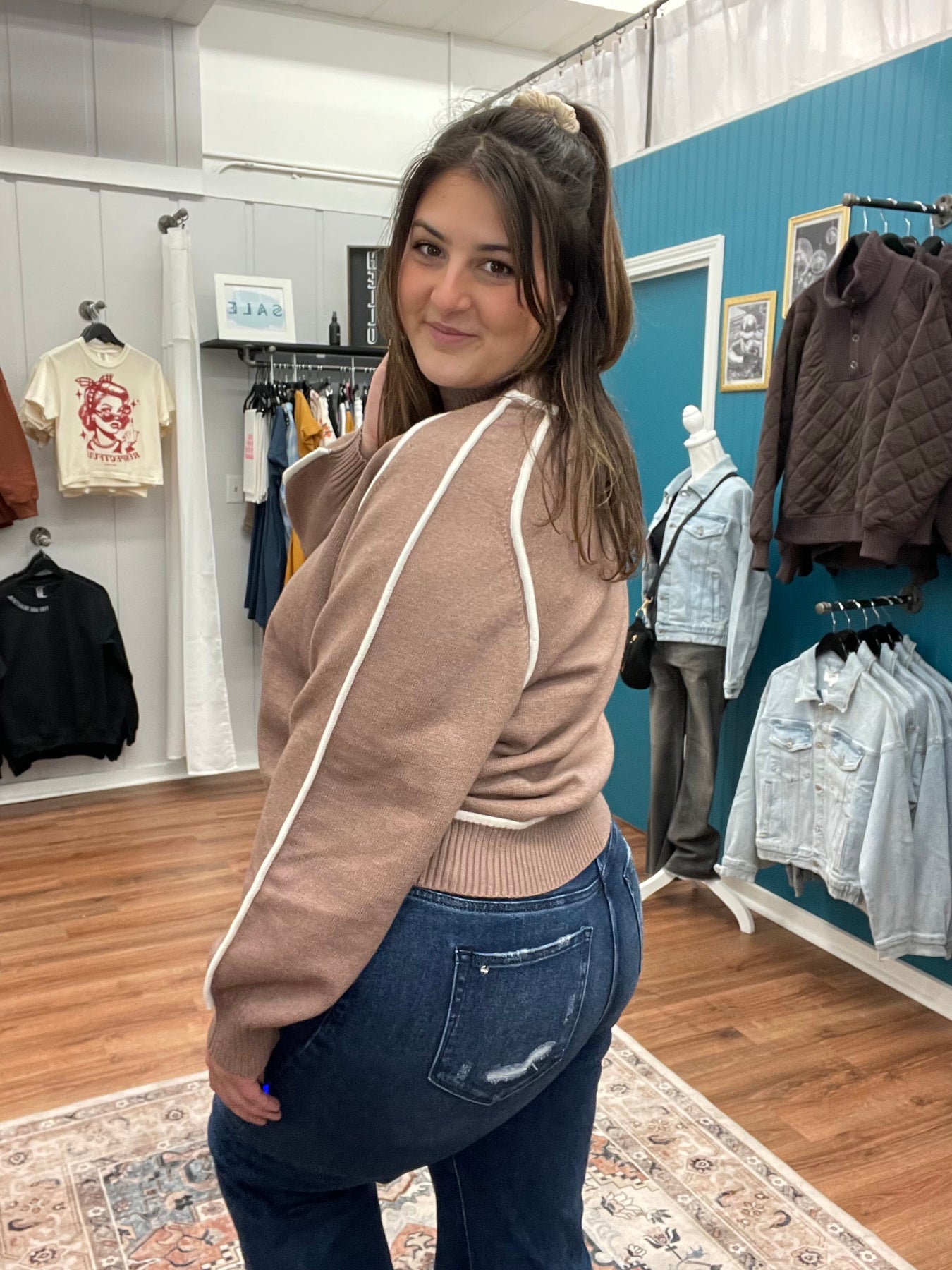Cynthia Mock Neck Piping Detail Sweater